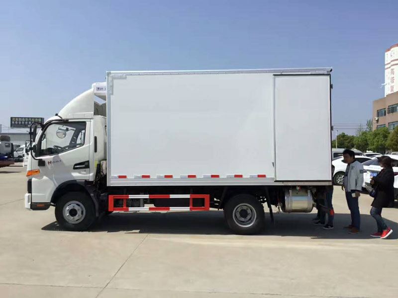 九 選裝配置:可選裝廂體側門(單側門或雙開門),可選裝鋁合金導風槽(導風槽有助于冷氣循環,提升制冷效果),可選裝廂體頂部加固肉勾滑道(直滑道 或 對接互通式拐彎滑道)。可選裝廂體內部采用全面不銹鋼材質(海鮮運輸必須加裝,海水有腐蝕性),可選裝280V-380V外接電源(停車熄火后可插電冷機繼續制冷工作),可選裝溫濕度監控記錄儀(帶打印功能)。