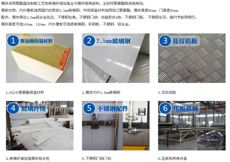 七 廂體配置:我公司面包式冷藏車工藝采用專用模具壓制成型,保溫性能達(dá)到國家A級標(biāo)準(zhǔn),保溫材料為無縫隙填充聚氨酯發(fā)泡,廂體內(nèi)外采用高強度玻璃鋼板材質(zhì),樹脂膠無縫連接,后配全密封雙開門,不銹鋼門框包邊,不銹鋼合頁和鎖件,廂體內(nèi)部加裝LED夜間照明燈。
