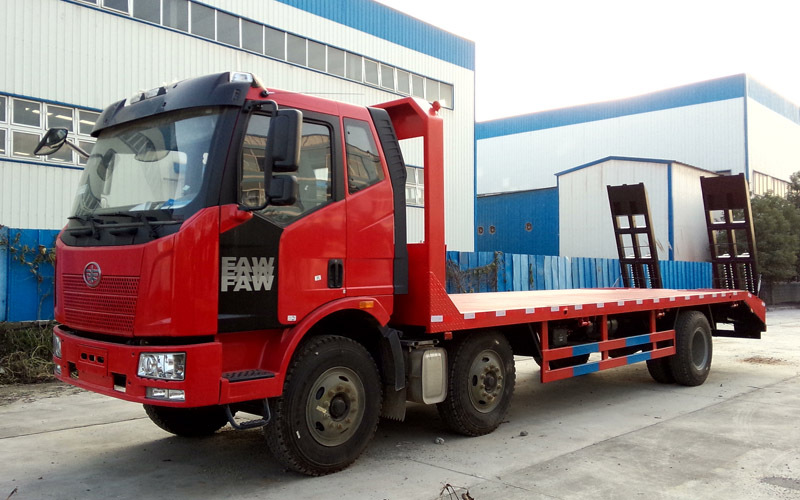 解放J6小三軸平板運輸車:大柴220馬力國四發動機,軸距(mm)1900+4700,外形尺寸:(mm) 1000×2500×3200,總質量(Kg) 25000,額定載質量(Kg) 15135,整備質量(Kg) 9670。J6M小排半平頂駕駛室,解放10檔變速箱,153后橋,270車架,11.00R20輪胎.8mm防滑花紋板,雙簧爬梯,簡易支腳,橫梁間距250mm,橫梁120*120*6mm國標方鋼。邊框14.5mm*14.5mm*6mm國標方鋼, 可選裝液壓/液壓折疊爬梯、平板寬度可選裝手動伸縮、液壓伸縮達到3米寬。