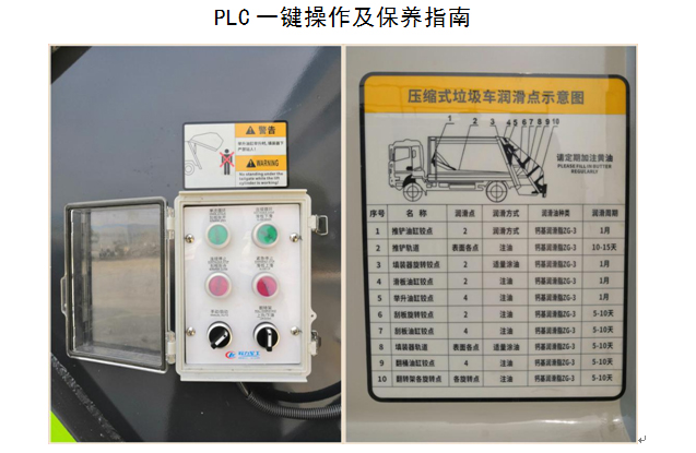 上裝標配:優質高強度Q345錳鋼制作箱體。雙向壓縮結構,帶尾部側部帶雙污水箱,海普瑞斯油缸,日本華爾卡密封圈,合肥長源整套液壓系統(多路閥、齒輪泵),西門子PLC手電一體操作模式,帶駕駛室操作,標配垃圾翻轉斗或掛桶翻轉板。